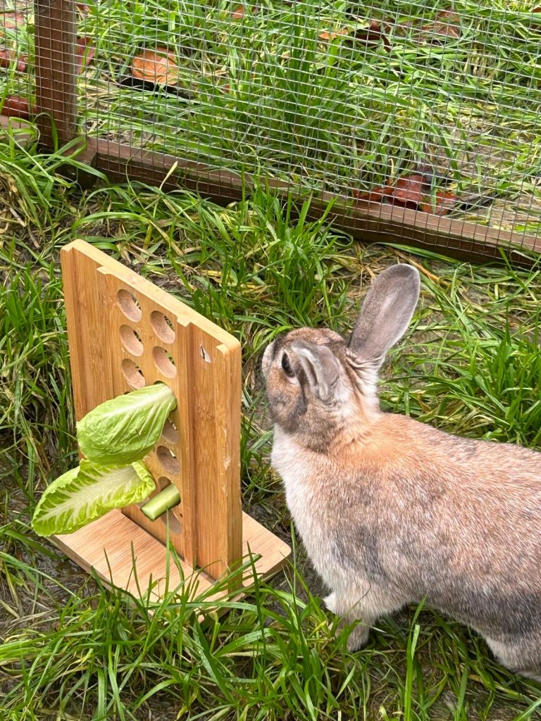 Our guests are fed morning and evening with dry food and fresh vegetables, and have unlimited hay and water of course. If your pet has specific dietary requirements we’re happy to cater for them, and for you to provide specific foods if necessary.