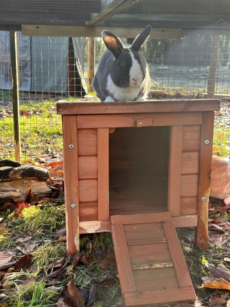 Our hutches are in an outdoor secure area, and are covered in the event of rain or cold to ensure a cozy, warm and dry environment. We can also offer indoor Rabbit accommodation, subject to availability.